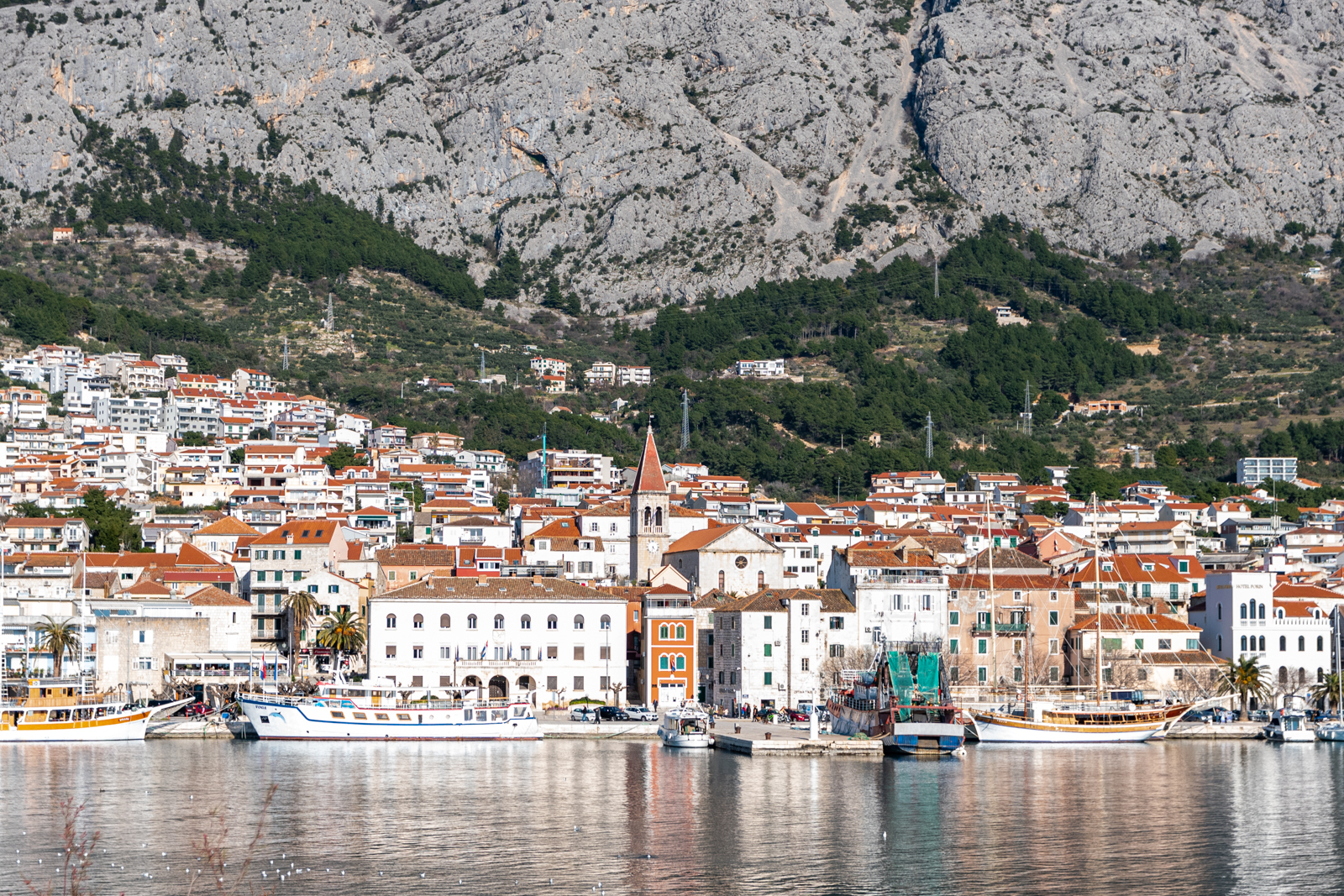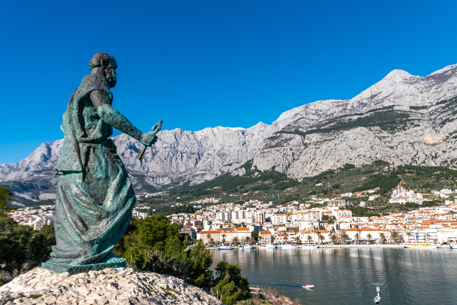 It is a famous tourist centre, located on a horseshoe shaped bay between the Biokovo mountain and the Adriatic Sea. The city is noted for its palm-fringed promenade, where fashionable cafés, bars and boutiques overlook the pretty harbour where many pleasure craft are moored.